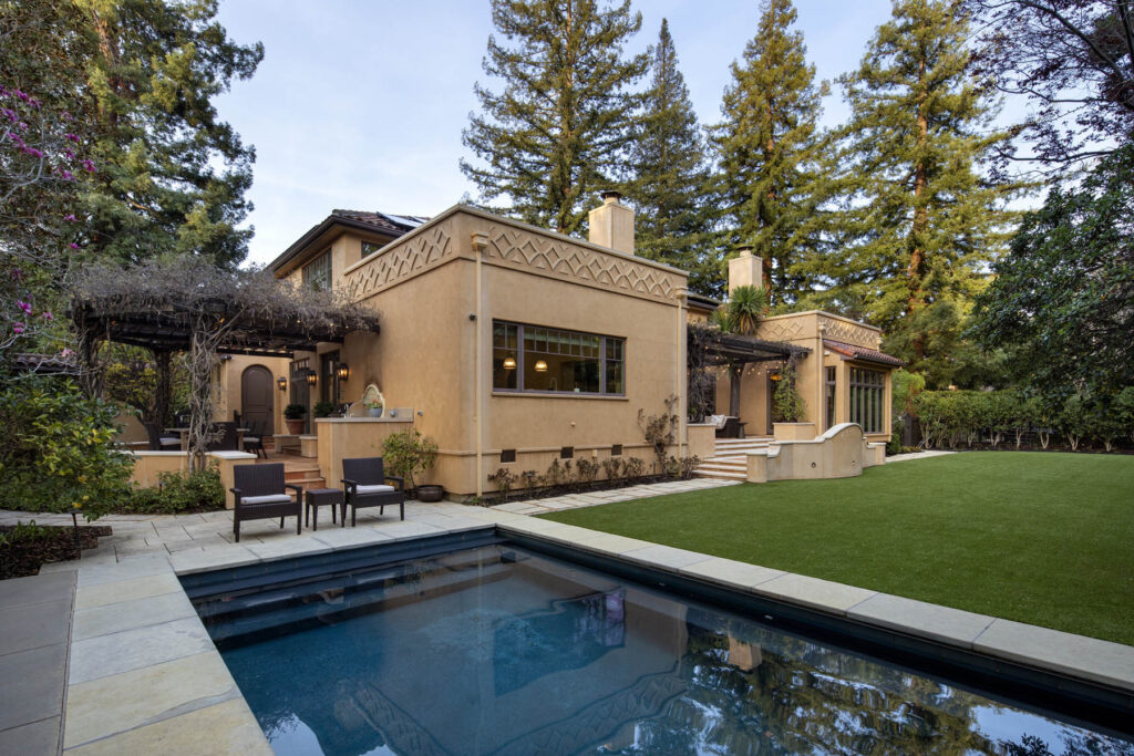 THIS RARE TREASURE IN CRESCENT PARK combines the architecture of a Mediterranean villa with the relaxed sophistication of modern luxury living complete with 5,000-bottle wine cellar, exceptional kitchen, and enchanting outdoor spaces. Completely transformed with a whole-home renovation, including all infrastructure and solar power, every detail showcases extraordinary craftsmanship. Hand-carved walnut floors, baseboards, and doors, imported French fireplace mantels, and striking zinc kitchen counters highlight the interiors. Spanning three levels, the home has five luxurious bedroom suites, an office, gym, and theater room. Outdoor spaces invite year-round enjoyment with a solar-heated pool, loggia with fireplace, heated dining lounge with barbecue kitchen, vast synthetic lawn, and half basketball court. Situated at the end of a cul-de-sac less than a mile from downtown, this premier setting also provides access to acclaimed Palo Alto schools.